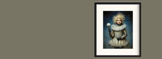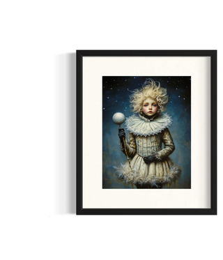 This enchanting art print portrays a whimsical take on Jack Frost, depicted as an ethereal figure with delicate, almost otherworldly features.