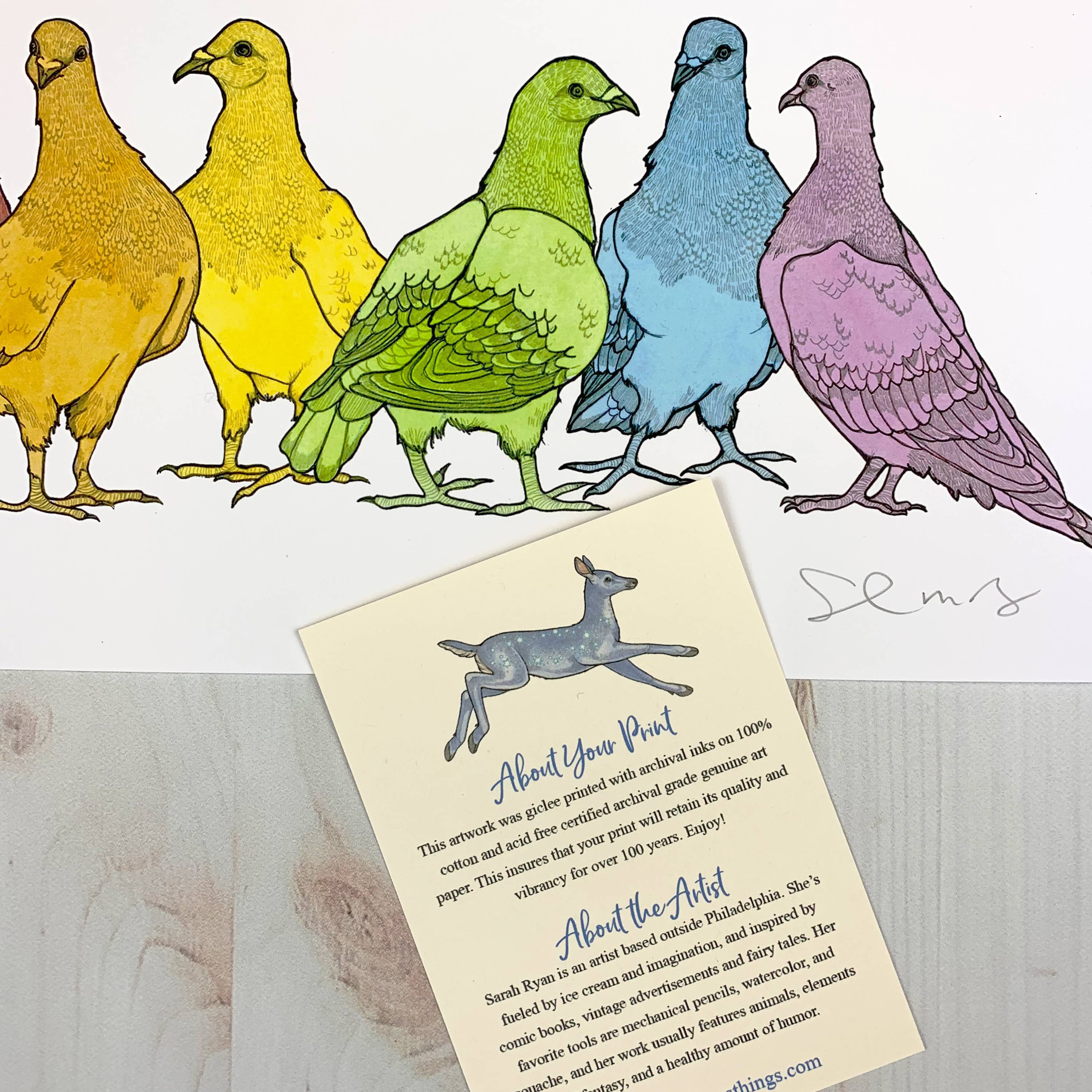 It's giclee printed with archival quality inks on 100% cotton matte paper. Each print is backed with a white board, info card, and clear sleeve.